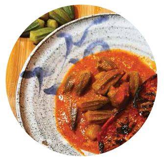 על צלחת נסדר לנו שני חצאי עגבניות שרופות ועליהן ניצוק את הבמיה ברוטב עגבניות, והנה לנו מנה של החיים, רק אל תשכחו מה שסבאח אמר – להגיש אותה רק בערב!