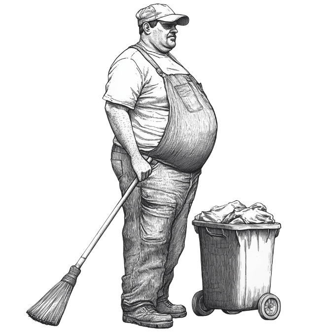 אהבתי להסתכל על פיטר כשהוא בא להביא אוכל ולנקות את המעבדה. הבגד שקראו לו סרבל כיסה אותו מהצוואר ועד הנעליים וגם בליטה גדולה של הבטן שלו שסקרנה אותי הרבה. לפעמים הייתי מנסה למשוך לפיטר בבגד סרבל כדי לראות מה הוא מסתיר אבל אף פעם לא הצלחתי לגלות.