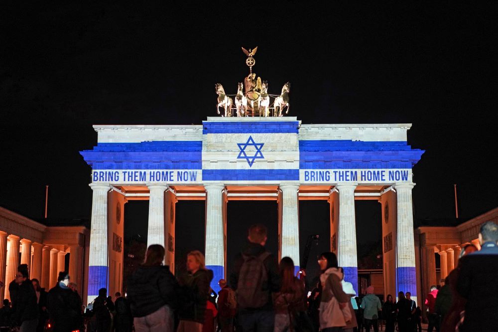 שער ברנדרבורג בברלין מואר לאות הזדהות עם ישראל