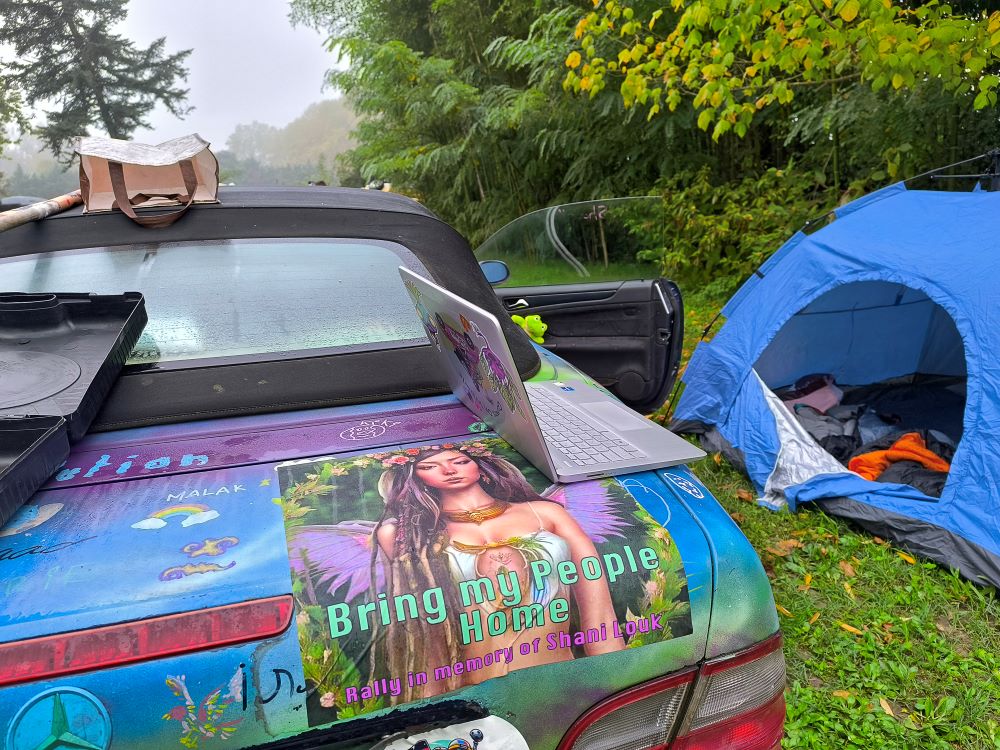 זה בסך הכל היום השלישי למסע ונדמה שחלף כבר לפחות שבוע מההזנקה. הבוקר התעוררתי באוהל בגן ציבורי במרחק של כעשר דקות משער הניצחון. כפות הרגליים שלי עדיין היו קפואות מהלילה, הכל סביבי היה שקט. נדמה שכל אנשי הראלי יצאו לדרכם ורק אני עוד מכורבלת בתוך שק השינה המחורבן. הבטתי החוצה וכל מה שהצלחתי לראות זה את שני, בת אחותי שנרצחה ב-7 באוקטובר, מציצה אליי ממדבקה על המכונית הצבעונית בעולם. דמעה קטנה חמקה לה ונספגה בשק השינה שהיה לח בכל מקרה.