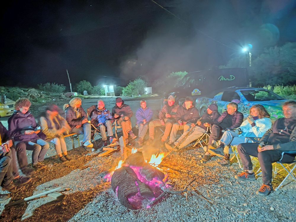 לקראת ערב אנחנו מגיעים למחנה כשחלק מהדיונות האבודות בסהרה מפוזרות בתוך המכוניות ובכל חלקי הגוף. בערב אנחנו נפגשים לארוחה מדברית לאור נרות, אחריה אנחנו יושבים סביב המדורה מתחת מיליוני כוכבים, וכל אחד בתורו מנסה לתופף מקצבים בדרבוקות ובכלי תיפוף שונים שלהקת הנגנים השאירה לנו. מסתבר שאין לנו השנה אפילו מתמודד אחד עם שמיעה מוזיקלית.