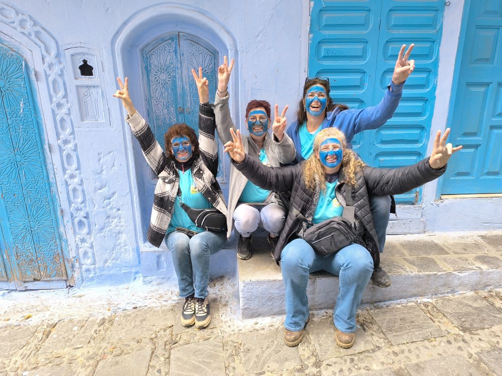 אנחנו יוצאים בנסיעה קצרה יחסית בכבישים קטנים לעיר הכחולה שפשוואן. אנשי הראלי לוקחים את המשימה המטופשת שנתנו להם בכל הרצינות. הם צובעים את עצמם בצבע כחול והופכים בן רגע לאטרקציה של העיר. תיירים מיפן עומדים בתור כדי להצטלם איתם.