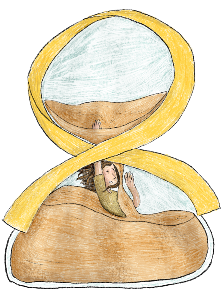הרי לנו מטאפורה מושלמת למצבם הבלתי נסבל של אנשים שנחטפו לא רק מישראל ומבתיהם ומאור השמש אלא גם מהזמן עצמו. שעון החול השטני שלהם הוא תנועה אינסופית של שעוני חול אוזלים הנהפכים כדי לאזול שוב ושוב ושוב בזמן שאנשים אחרים, אדונים לזמנם ואדוני זמנם, צוהלים על חיסול ממוקד.
